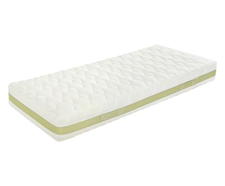 Il finissaggio del rivestimento è eseguito con fibre anallergiche e antiacaro morbide al tatto. Materasso in lattice matrimoniale. Il materiale accompagna le linee del corpo nei punti di pressione senza deformarsi.